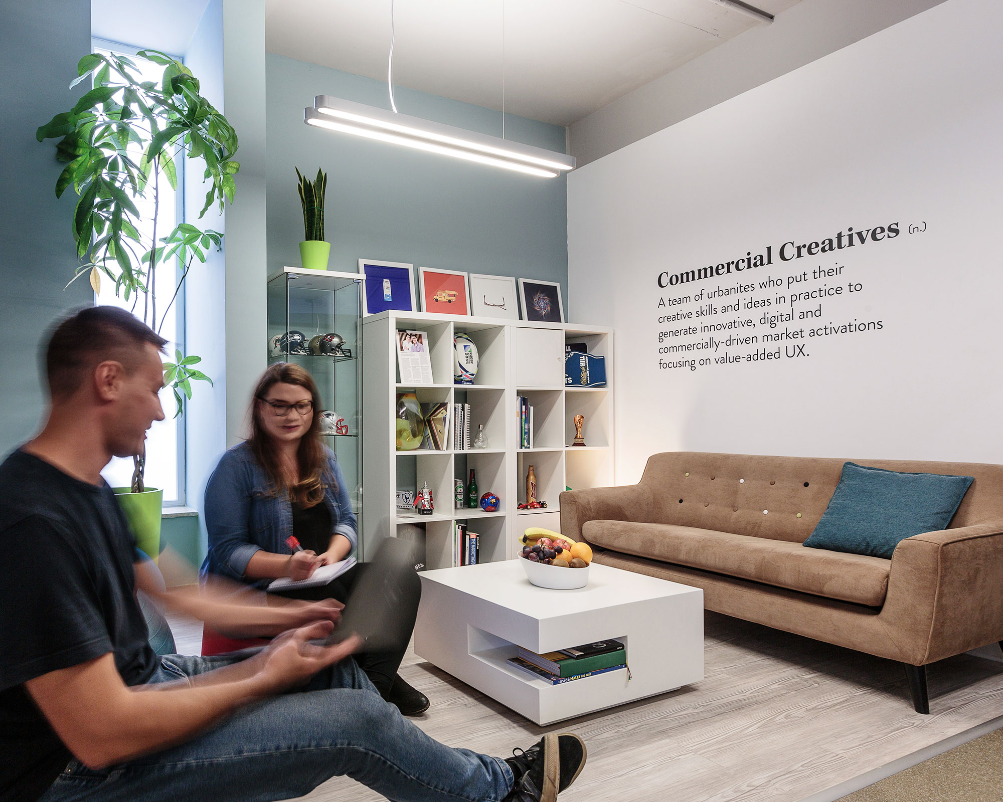 As soon as you walk into the Stadium, you are welcomed with vibrant colours that really set the scene for the creative work that takes place inside it. We have an open office that allows conversation and idea-generation to flow easily, and a huge blackboard that allows us to jot down those ideas for everyone to see and give each other feedback.